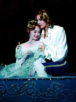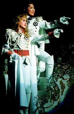 星組の稔幸オスカルと星奈優里アントワネットは、愛のシーンより厳しい運命を前にした場で役者魂を美しく発揮したのが特色で、現在公演中の宙組では、和央ようかフェルゼンの「愛の面影」の歌唱の素晴らしさと花總まりアントワネットの刻々変わる美表現の強弱が印象的である。
