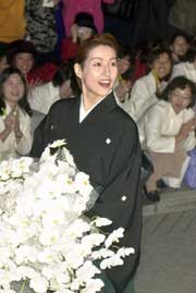 終演後は劇場内で記者会見した後、袴姿で、詰めかけた約8000人のファンの前をパレード、劇場を後にした。