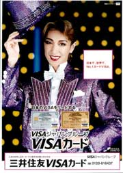 「三井住友VISAカード、VISAジャパングループは、昭和63年の「キス・ミー・ケイト」を皮切りに「風と共に去りぬ」「エリザベート」などを協賛している。平成5年に愛華みれをキャラクターに起用。 |