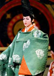 あまり苦手意識はないですね。王朝物ですから、笏(しゃく)の持ち方とか左手の角度など型が決まっていて、それがすべての基本になります。こういう衣装を着ると自然と動きも優雅になりますね。