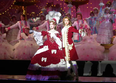 フランス革命の血なまぐさい史実を彩るスウェーデンの伯爵、フェルゼン(和央ようか=写真右)とアントワネット(花總まり=写真左)のつかの間の恋。